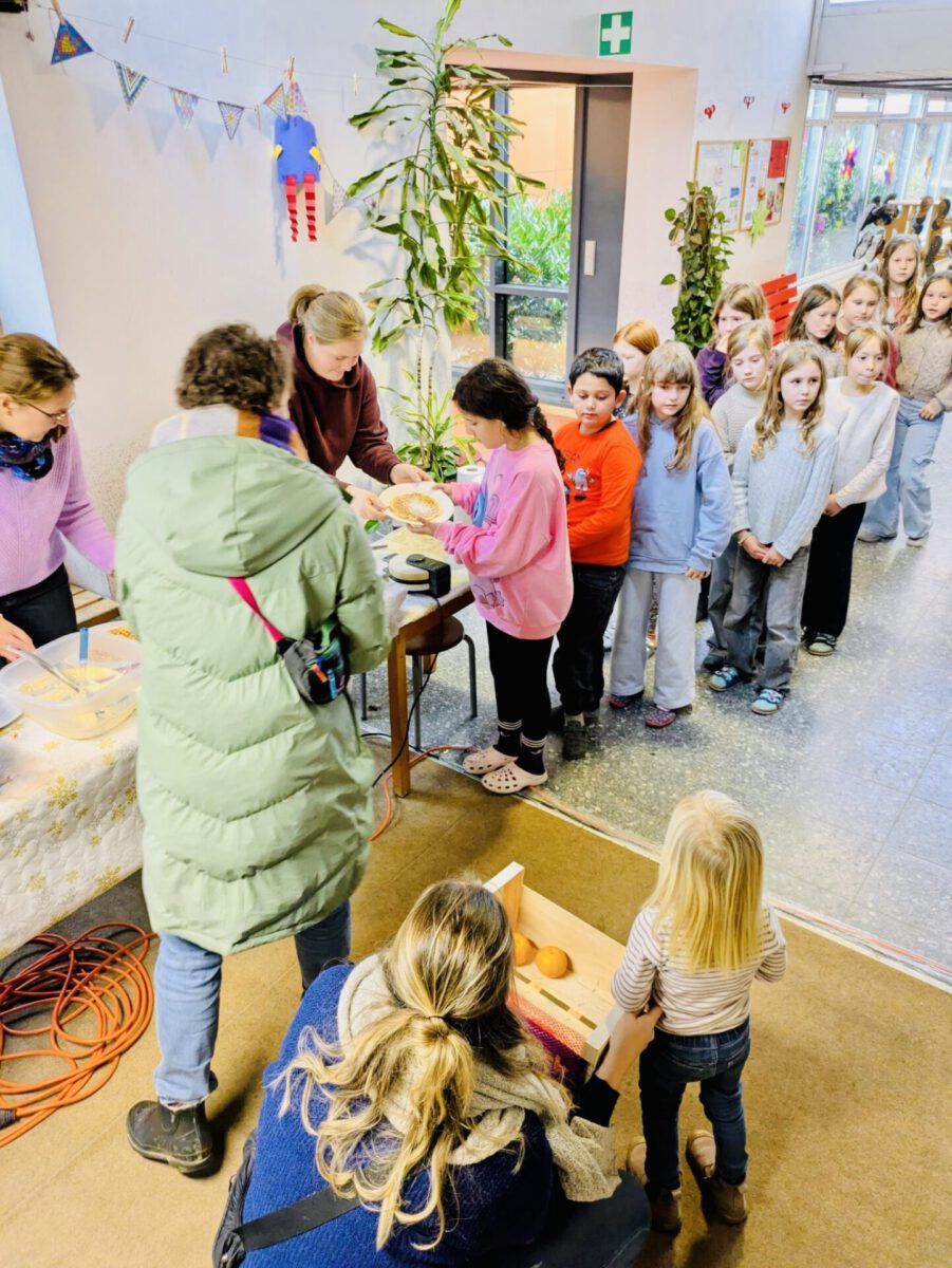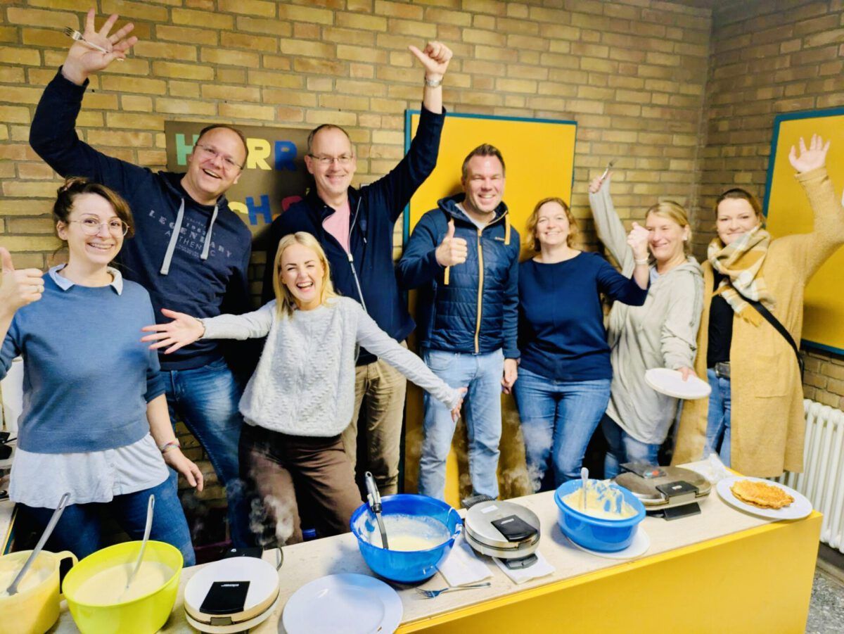 Am 5. Dezember gab es eine Überraschung in unserer Schule: Viele Helferinnen und Helfer vom Nikolaus hatten sich früh morgens getroffen und in den vier Lernhäusern Waffeln für unsere Schüler:innen gebacken. Es roch den gesamten Tag wunderbar köstlich in den Fluren…